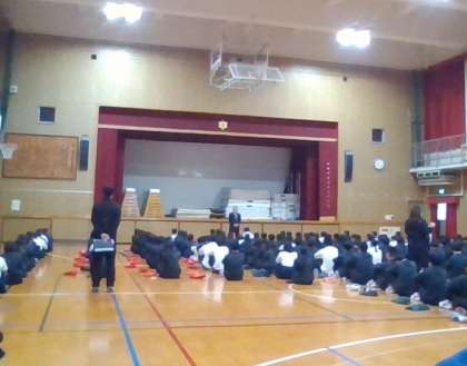生徒指導主事の先生からは、防寒着の着方のお話、生徒会からは今週の行事予定の連絡がありました。