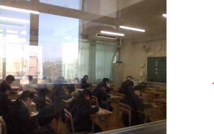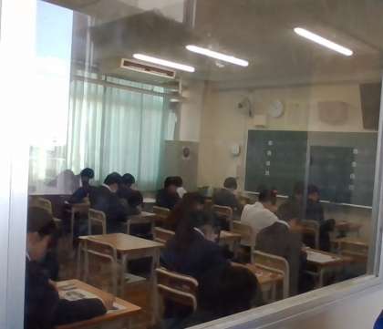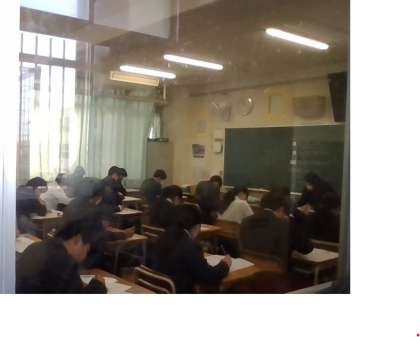 左から1・2年生は美術、3年生は技術家庭のテストに取り組んでいます。