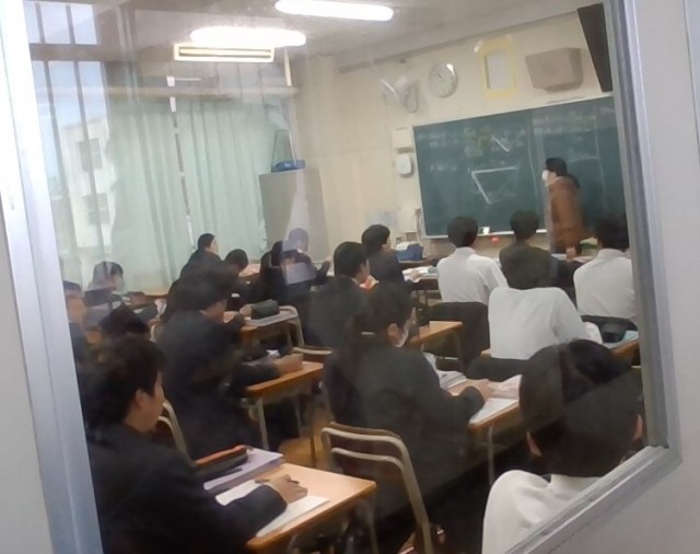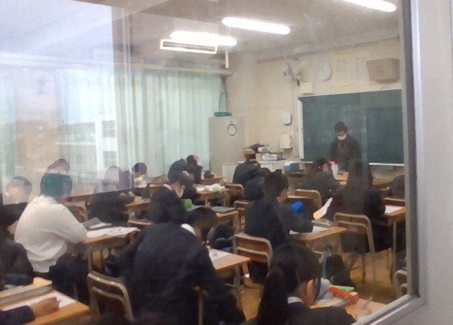 上から1年生体育(女子)、2年生社会、3年生数学の授業です。