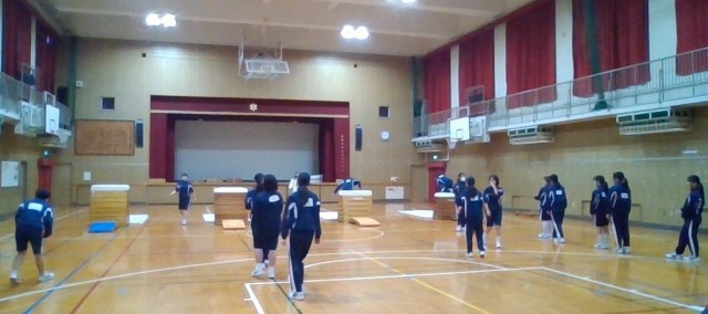 男子はサッカー、女子は跳び箱の学習をしています。