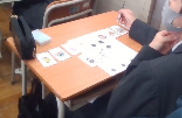SPトランプの出前授業を行っています。写真は1年1組の様子です。