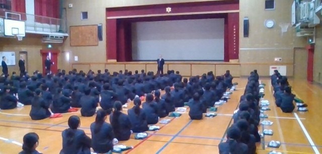 大正西中学校の校訓「根気・責任・明朗」についてのお話でした。