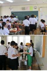 6月12日(木)、食缶による給食がありました。 1年生の教室では、エプロン・...