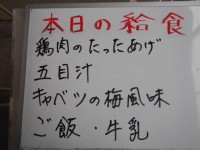 今日の給食は、鶏肉の竜田揚げ、五目汁、キャベツの梅風味です。 醤油とみりんで下味...