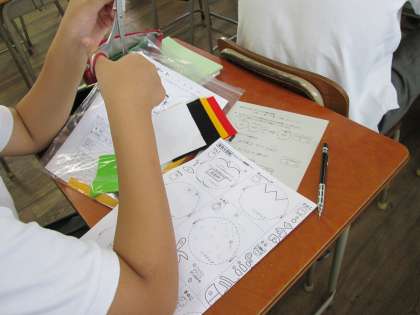 男の子も女の子も、少し童心にかえって、幼稚園児のことを思いながら、作成していきます。可愛らしい作品、完成が楽しみです。