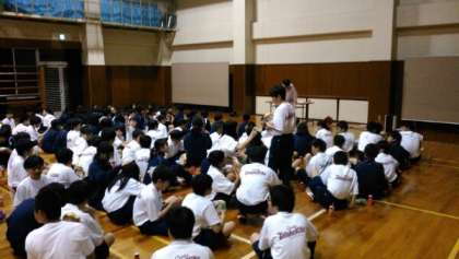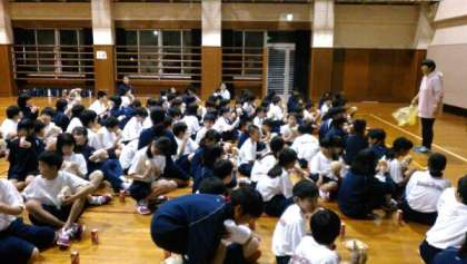 補食の時間です。パンとジュースを美味しそうにいただいています。