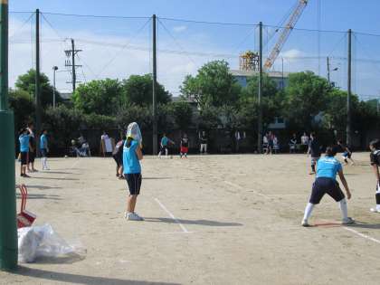 午前中は女子のキックベース、午後は男子のソフトボールです。