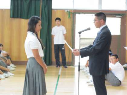 賞状伝達は、ワールドトーク発表および、大正区中学生親善キックベースボール大会準優勝のものでした。