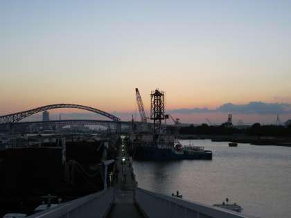 午後6時15分過ぎ。涼しくなったので、近くのはしけ桟橋へ。
