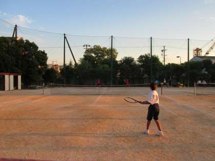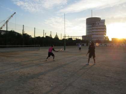 そして、夕暮れ。本校のテニス部も夕陽に向かってスマッシュを、ガンガン決めていました。