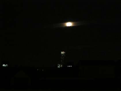 最初は曇っていて、なかなか月が顔を出しませんでしたが、雲の切れ間がわずかにあって、一瞬!