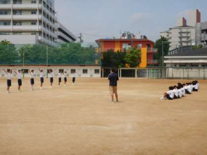 3年の体育では「集団行動とラジオ体操」のテストをしていました。