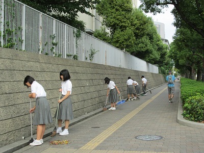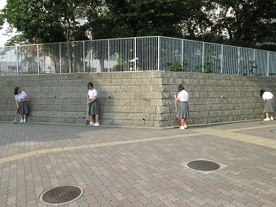 今朝は、吹奏楽部員が正門まわりをきれいに掃いてくれました。
