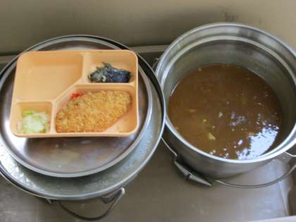 今回はカツカレーかと思いきや、白身魚フライカレーでした。