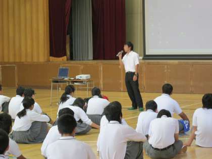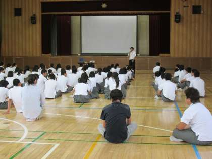 最終回の今日は体育館で3年を全員集めて公開授業に。
