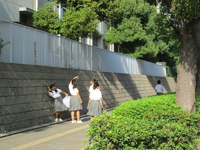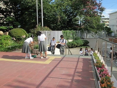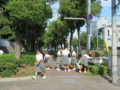 今朝は、ソフトテニス部員、そしてバレーボール部男子部員が、正門付近のゴミ拾いや落ち葉集めを手伝ってくれました。
