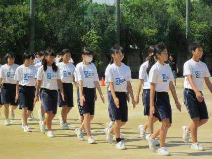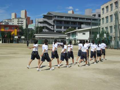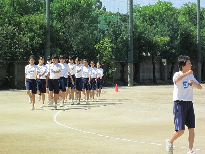 来月の体育大会に向けて、体育の時間に行進練習が始まりました。