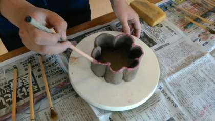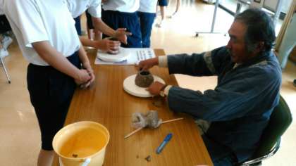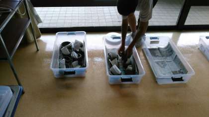 個性的な作品がどんどん出来上がってきます。完成したら箱に入れ、あとは焼いていただき、後日学校に送ってもらいます。どんなものになっているかお楽しみです。