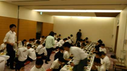 予定よりかなり早く「休暇村 瀬戸内東予」に到着しました。入室後、18時30分より大広間で夕食です。
