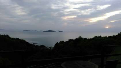 おはようございます。修学旅行3日目の朝です。雨がやみ、雲のすきまから日の出が見えます。
