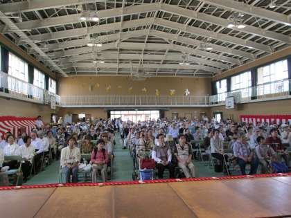北恩加島小学校の体育館に、集まったお年寄りが何と400人以上!