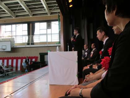 地域町会長様のご挨拶のあと、筋原区長様と當麻校長先生から激励のご挨拶がありました。