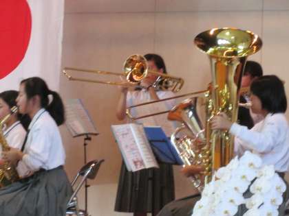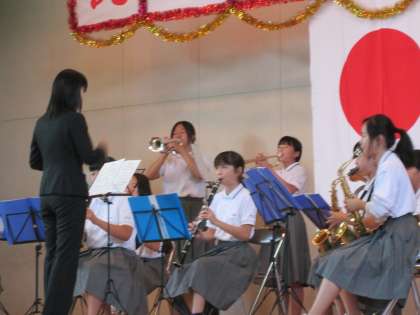 午前10時のオープニングは、本校の吹奏楽部による演奏です。