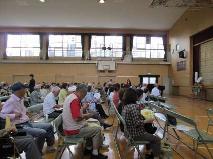 そのあと、第一部では、社会福祉協議会の会長様よりご挨拶があり、泉尾東地区には70歳以上のお年寄りが1,070名おられ、女性が6割を超えることがご披露されました。