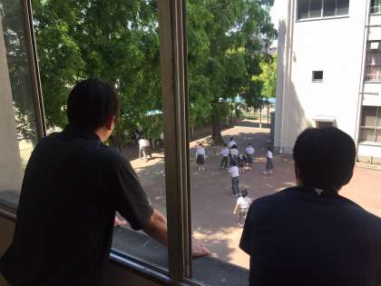 子どもたちは昼休みに外へ出る