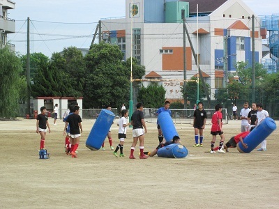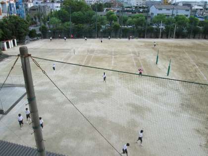 続いて、テニスコートで、ソフトテニス部。グランドで、ラグビー部。