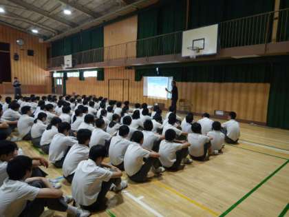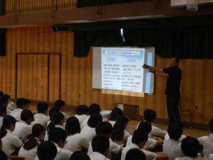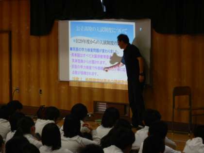 進路指導主事の先生よりプロジェクタを使ってわかりやすく、