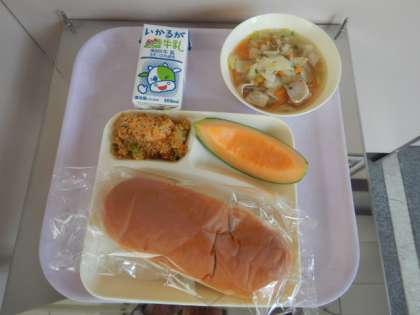 今日のドリアは、鶏肉、玉ねぎ、グリーンピースが