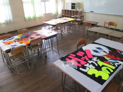 入場行進で映える圧巻の学級旗。とても楽しみです。