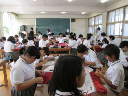 今回の授業は、被服でランチョンマットの刺し子実習です。