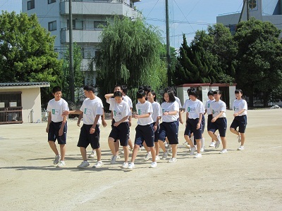 本日、午後からは3年生の合同練習。前半は入場行進、開会式、ラジオ体操の練習を行いました。