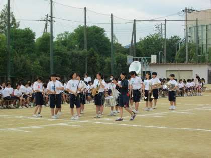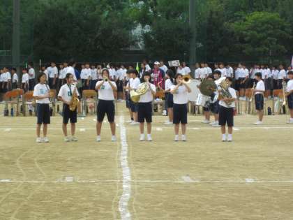 まずは、吹奏楽部のファンファーレ。入場行進からです。
