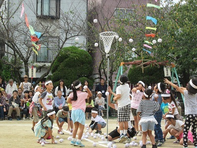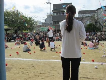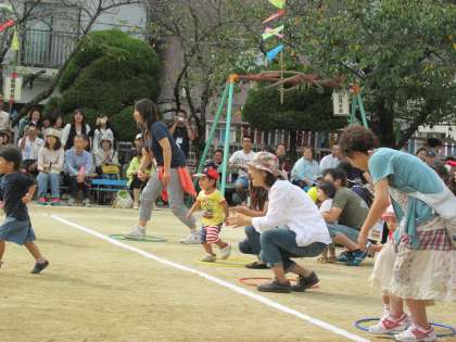 続いて、就学前幼児さんのかけっこ、小学校1年生の玉入れが行われました。