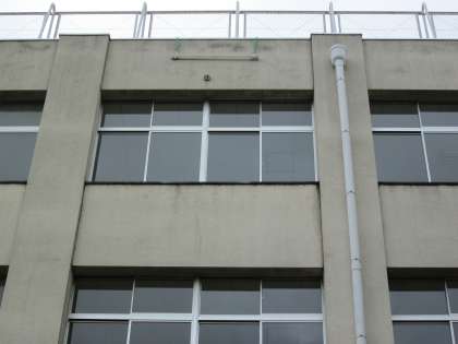 まずは、ラグビー部の大阪府チーム選抜選手の垂れ幕が、風の強さに耐え切れず、切れていました。早速、修理にかからないと。