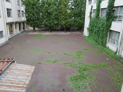 グランドの防球ネットは、前日にバレーボール部が倒してくれていたので、被害はありませんでした。