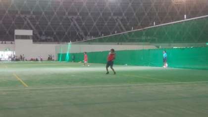 対戦相手は同志社国際の選手で、途中5-5と接戦。最後は5-7と残念ながら敗れてしまいましたが、気温が高く、体力的にも厳しい中、最後まであきらめず頑張ってくれました。