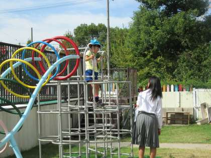 フラフープを使って、また砂場で、そしてジャングルジムで。