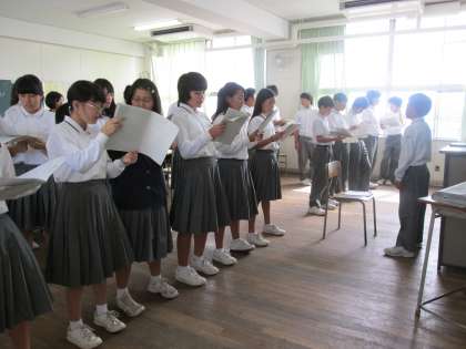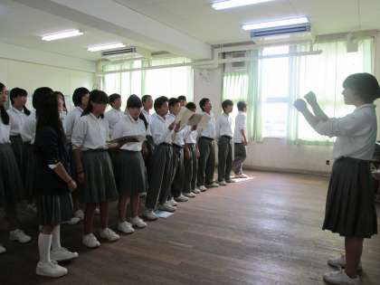 2年は音楽コンクールの取り組みで、3クラスは教室で練習を競い合いました。