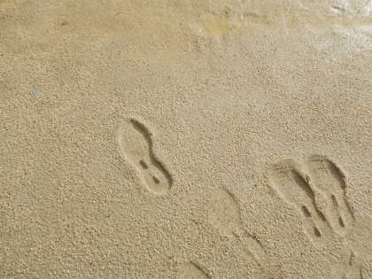 早々に雨は上がり、晴れ間も出ていますが、グランドはかなりぬかるんでおり、歩くだけで足跡がくっきりです。