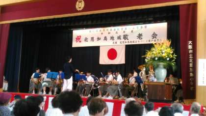 本日、北恩加島小学校体育館で北恩加島地域敬老会が開催され、式典後の第2部に本校吹奏楽部が出演しました。「時代劇メドレー」「昭和50年代メドレー」を演奏し、皆さんに楽しんでもらいました。