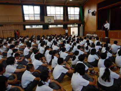 本日、朝の全校集会において、校長先生より連休中に開催された地域の敬老会についてのお話と、千葉県で未だに復旧しない停電から防災について今一度考えていこうというお話がありました。