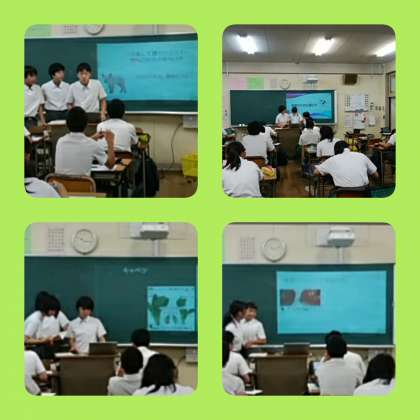 「お買い物に行ったときに新鮮な生鮮食品を選べるようになろう!」をテーマに2〜3人の班でプレゼンテーションを行いました。