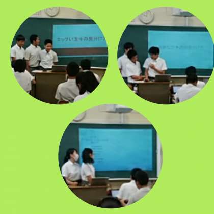様々な食品の見分け方を画像も交えて分かりやすく説明するだけでなく、タイトルに凝る班も多く楽しいプレゼンテーションをしていました。