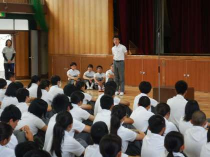 校長先生からは、ラグビーワールドカップ日本代表の福岡選手についてのお話がありました。