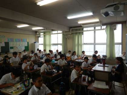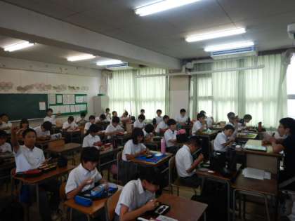 本日は体育大会の予備日だったために、給食の設定をしていない関係で昼食はお弁当です。(写真は1年の各学級です)