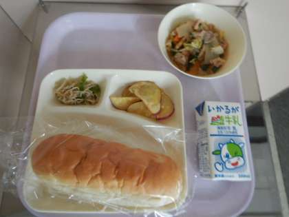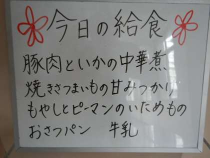 今日の献立の「豚肉といかの中華煮」には豆板醤(トウバンジャン)が入っているため、少し辛味があり、食べると身体が温かくなってきます。豆板醤はソラマメ、唐辛子を主原料に作る中国の発酵調味料で、中華料理の中でも四川料理でよく使われています。